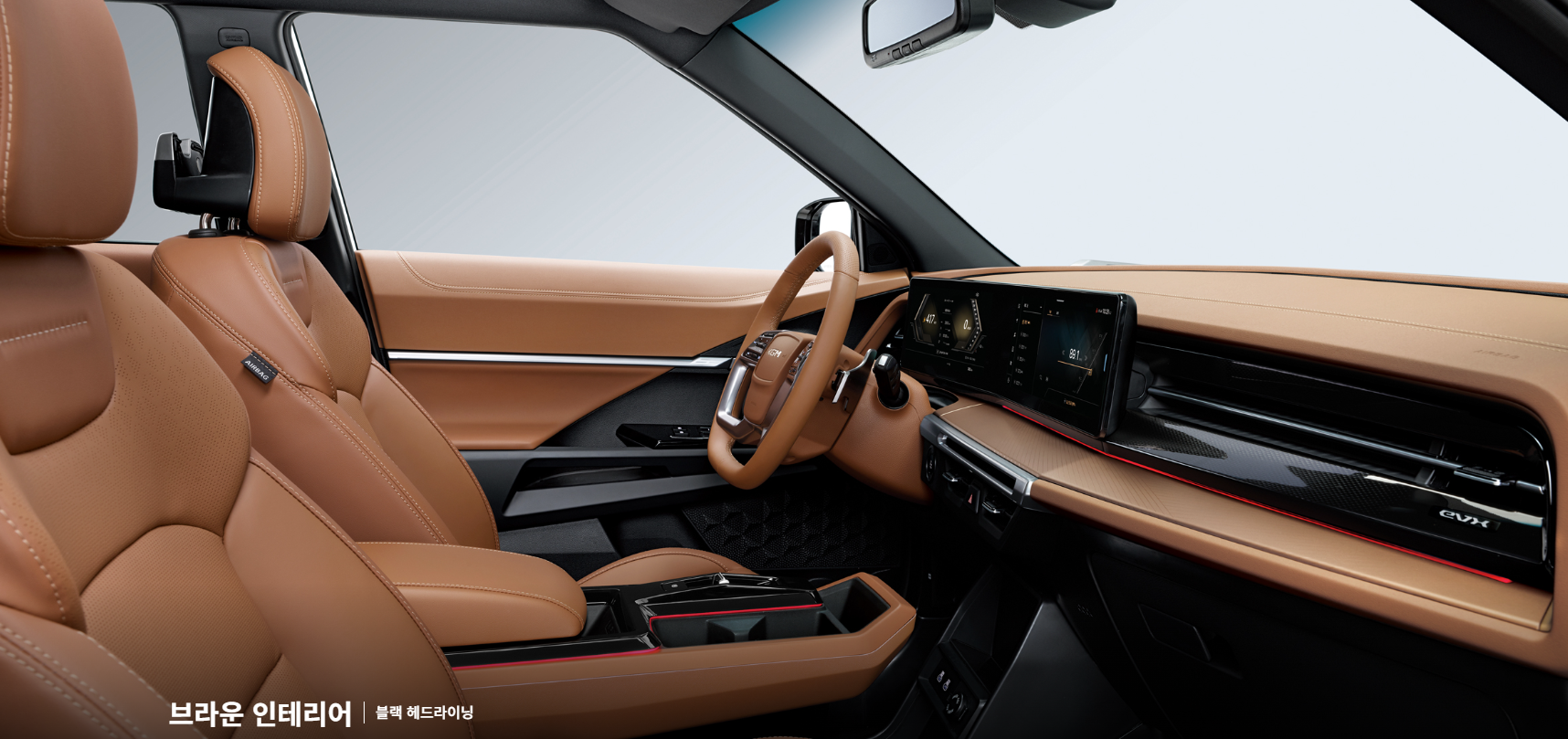 기존 EVX의 강인한 이미지는 여전하지만, 전면부 그릴 디자인과 헤드램프 라인이 더욱 세련되게 다듬어졌습니다. 특히 DRL 라인의 디테일이 정제돼 고급스러움이 한층 올라간 느낌이더군요.